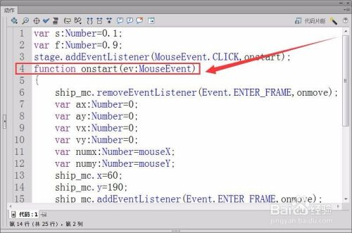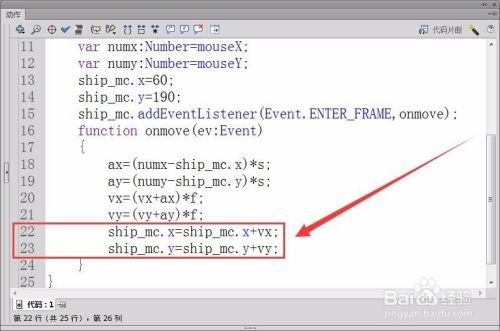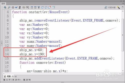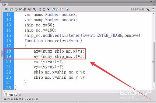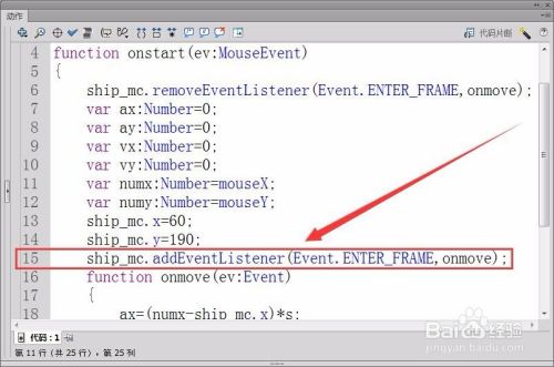 注册轮船影片剪辑元件ship_mc的enterframe事件的侦听器,用于控制轮船运动。