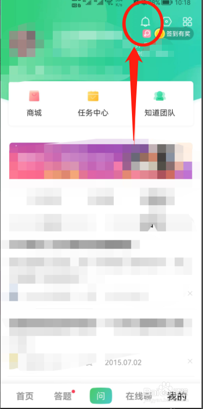 第一步,打开百度知道,进入首页,点击上方的消息图标