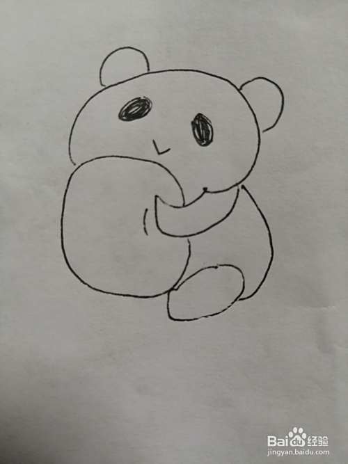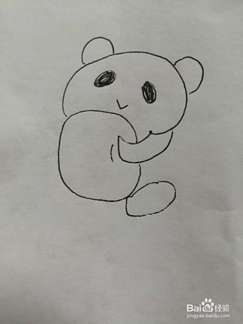 第三步,接着在可爱的小熊猫的头部下面画出一只小胖手,注意小手位置的画法。