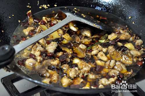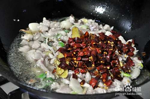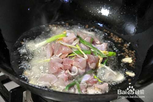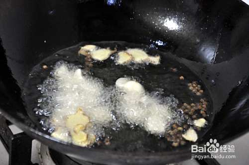 重新换一锅油,烧开后,倒入花椒、姜、蒜。