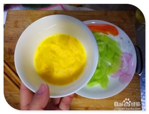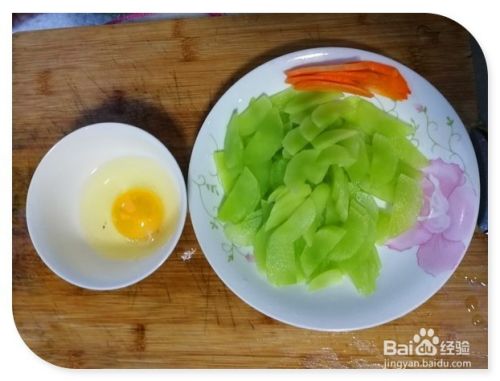 把莴笋、胡萝卜和姜都清洗干净,然后切片。把鸡蛋磕到碗里。