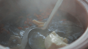 接近好的时候放入枸杞(枸杞不能高温加热太久会导致营养流失)