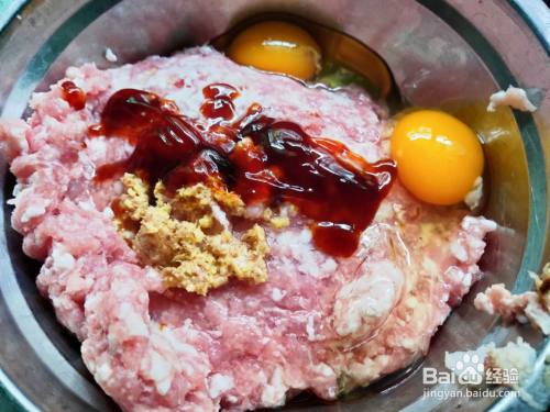 拍一块姜剁成姜泥,放入猪肉馅中。