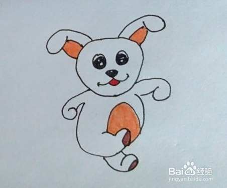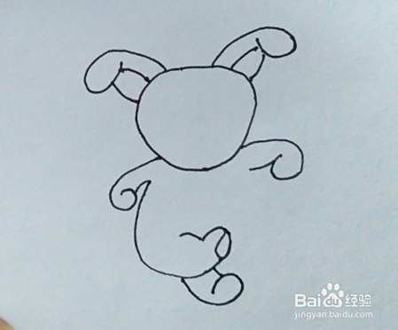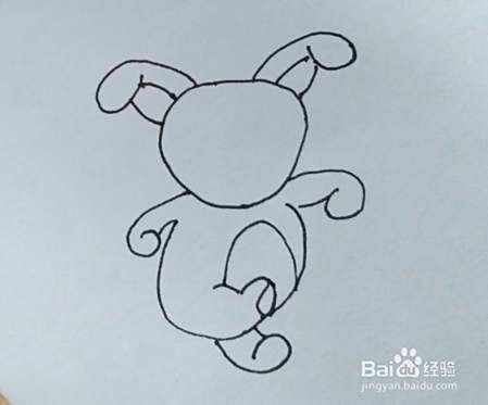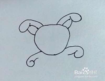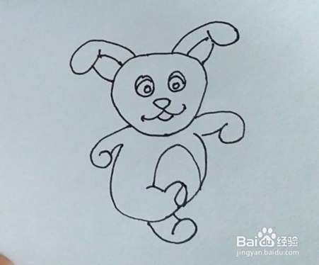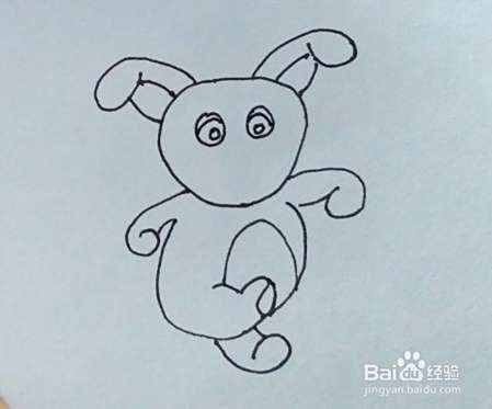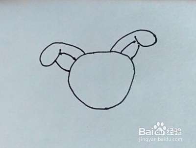 画小兔子的眼睛、鼻子和嘴巴,如图所示。