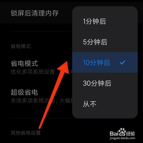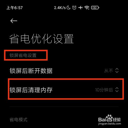 然后选择锁屏省电设置,点击锁屏后清理内存。