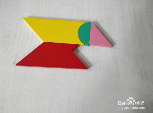 在半圆的左侧,放上黄色形状挨着,上端一齐,如图。