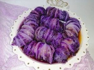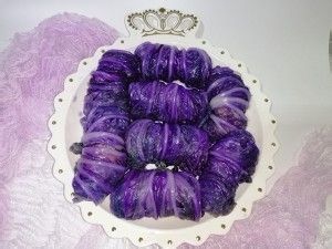 一,肉馅要腌制一下,会更入味。二,紫白菜要焯过才能好卷起来。
