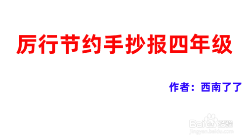 在手抄报的正上方写上“厉行节约四年级”,表达手抄报主题。
