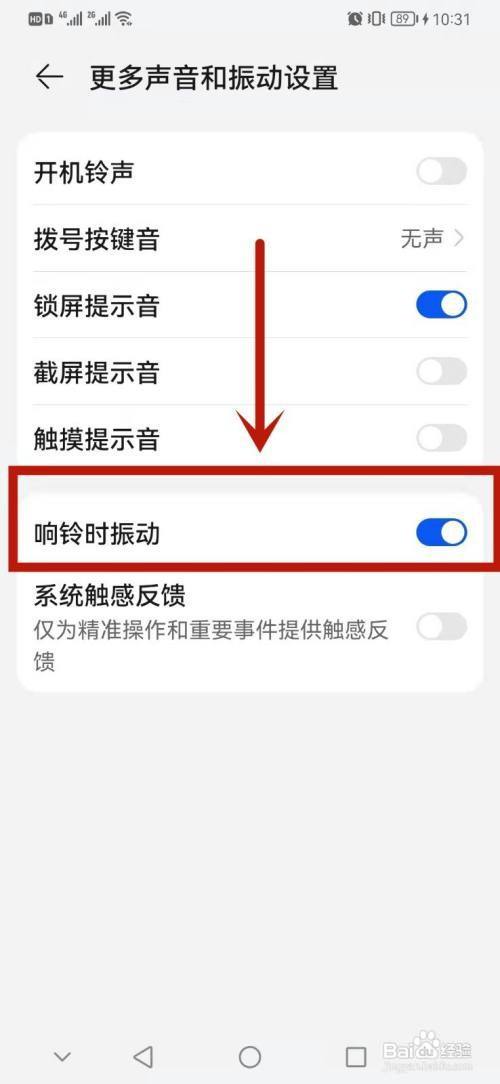 最后,找到【响铃时振动】选项,点击其右侧按钮即可。