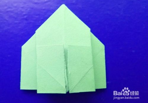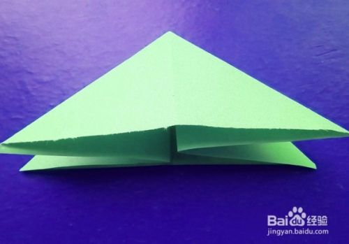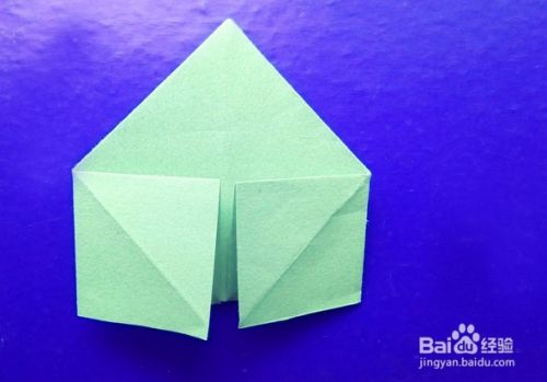 再把底部左右两侧的长方形从缝隙打开,向下右方向压折成下图的三角形。