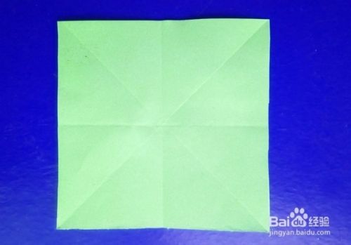 把正方形纸分别沿中心线和对角线对折和打开,形成米字痕。