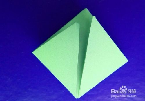 把左右两侧的三角从缝隙打开,向下右方向压折成正方形,另一面也同样。