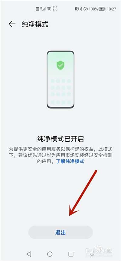 在进入的界面,点击退出按钮,将纯净模式关闭即可。