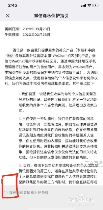 点击完成注册按钮,会提示隐私保护指引,点击同意按钮。