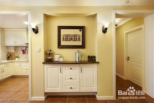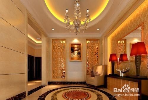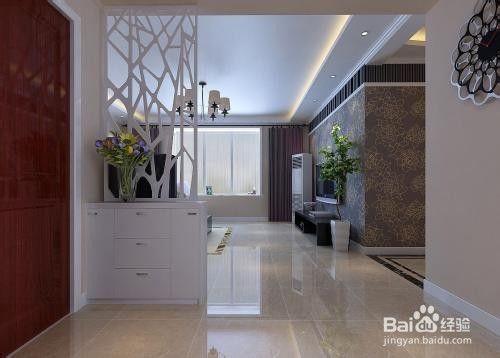 入门处最好以简洁大方为主,而且玄关基本上都与客厅和餐厅相连接,没有必要做一个独立的空间,但是可以利用一些比较美的隔断打造空间感。