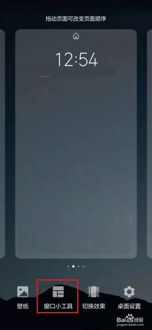 在华为手机桌面,双指捏合进入桌面管理,选择【窗口小工具】选项。