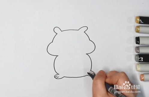 首先我们画出仓鼠的身体轮廓,它有着两只小耳朵,鼓鼓的脸颊,身体也是胖胖的。