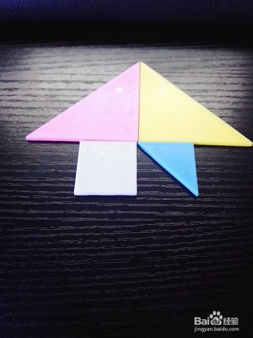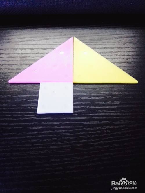 拿出一个白色正方形板放在粉色大号三角形板的下方,如图所示。