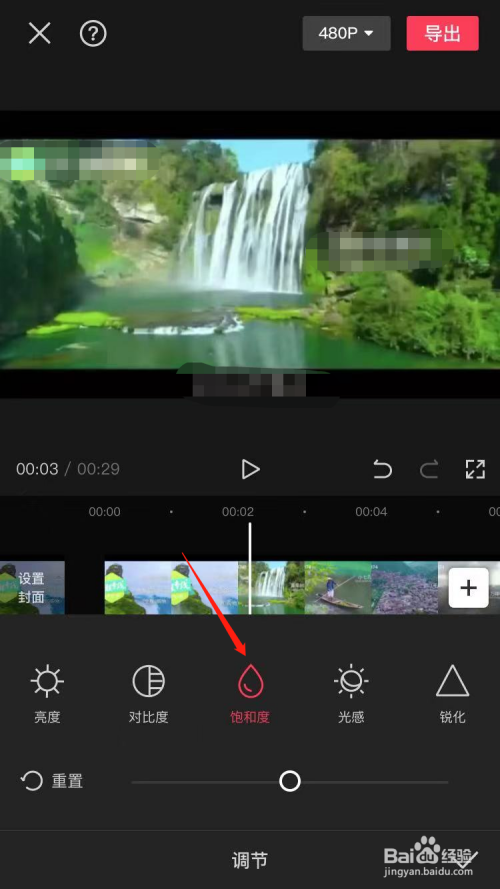 进入调节界面,可依次调节饱和度、亮度、光感等功能使得视频变清晰。