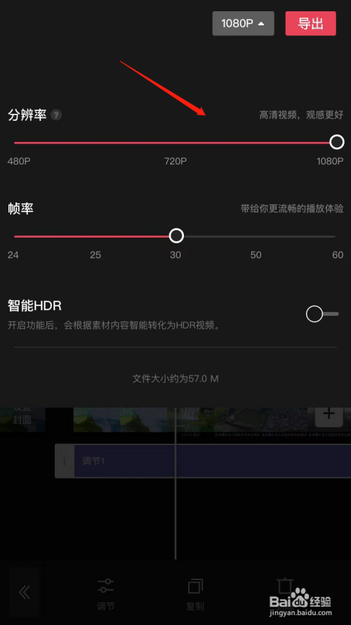 点击分辨率后,将它调到1080p,这样视频清晰度会较高。