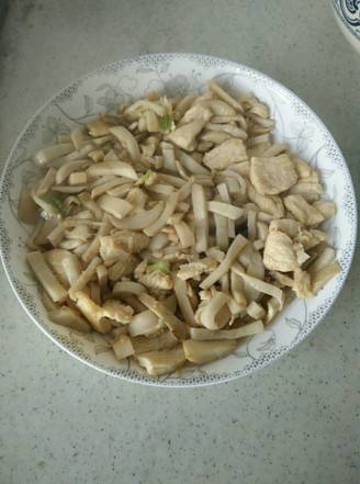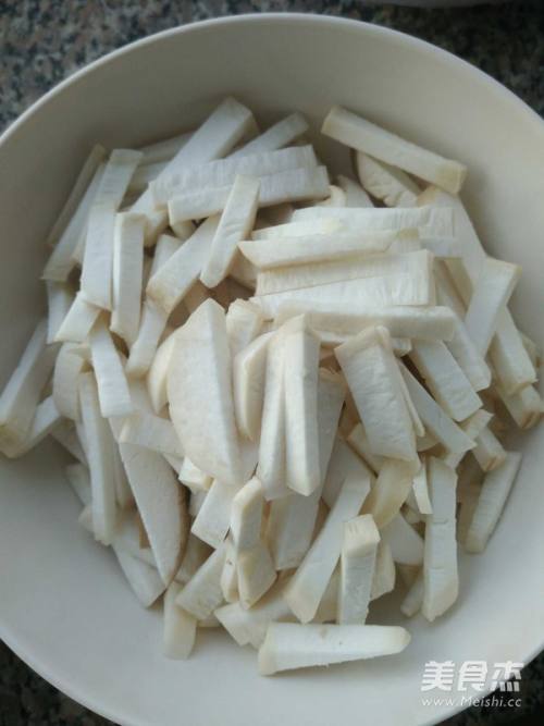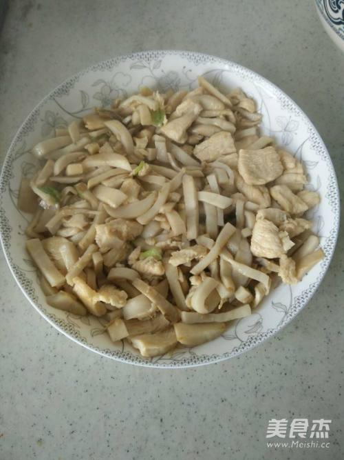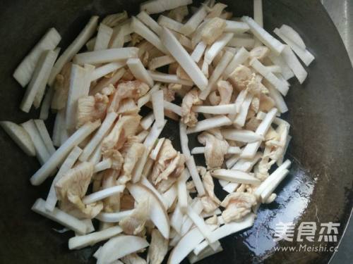 倒入杏鲍菇,快速翻炒,加入联闲哨少许盐,放入葱花,继续翻炒。