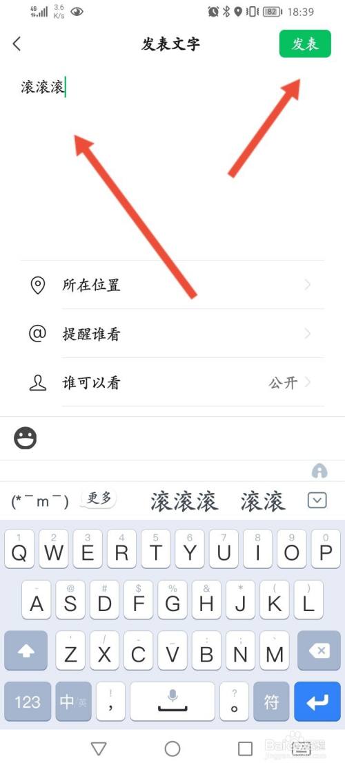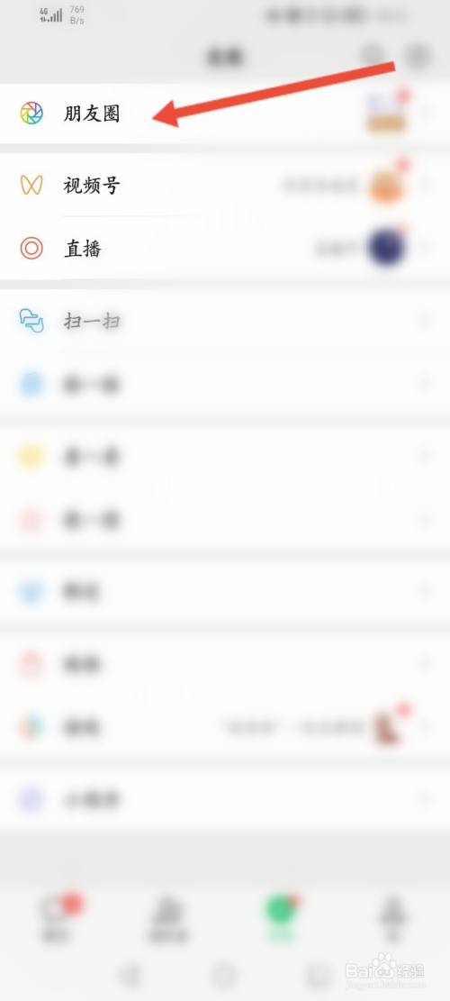 进入手机的微信软件,可在发现中,通过长按拍摄图标和输入文字内容,来发表文字即可。