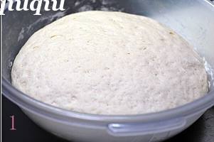 将干酵母和糖到入面粉中拌均匀,然后一点点加入温热的水,和成比较软的面团。一般要放比较温暖的地方发1个小时以上,冬天需要1.5~2小时。发至体积是原来面团的两倍大时,加干面揉光滑后,继续2次发酵。