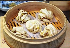 做好花卷后放蒸笼里冷水开蒸,锅开后继续蒸10分钟。因为已经2次发酵过了,所以锅开后立即开盖也不会回缩。