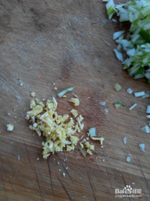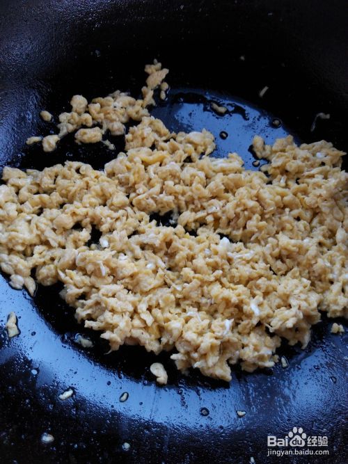 鸡蛋炒成碎米状,切好葱末、姜末,和面,不要太硬。