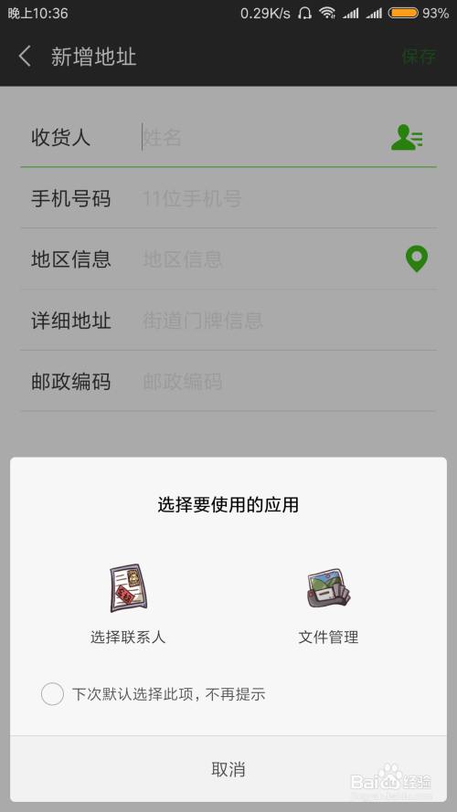 这样,我们就进入了添加微信新地址的界面,如下图所示,填写即可。