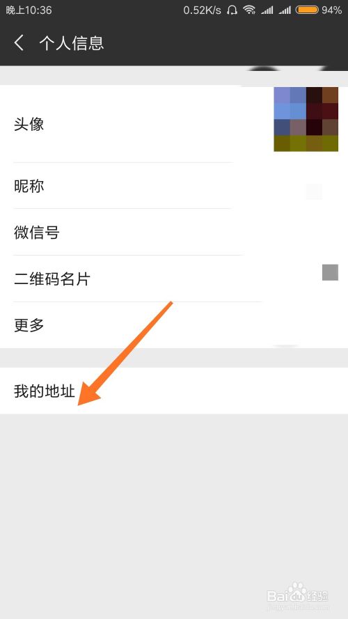 我们先进入查看微信地址的界面,点击我的地址即可查看,如下