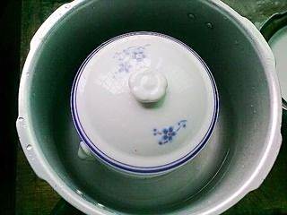 取出高压锅洗净,放入炖盅,盖上锅盖,大火至发出滋滋的响声,然后转小火炖30分钟即关火。