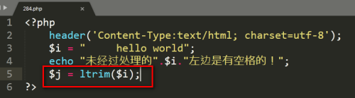 使用 ltrim() 函数对字符串变量 $i 进行处理,代码:$j = ltrim($i);