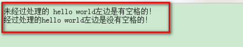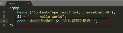 使用 echo 语句输出未经处理的字符串变量 $i,代码:echo "未经过处理的".$i."左边是有空格的!";