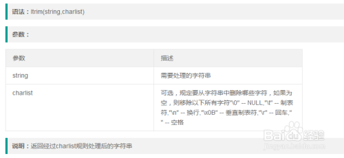 ltrim()函数的作用:删除字符串左边的空格或其他预定义字符,语法结构如图所示: