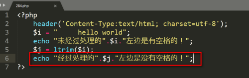 使用 echo 语句输出经过处理的字符串 $i,代码:echo "经过处理的".$j."左边是没有空格的!";