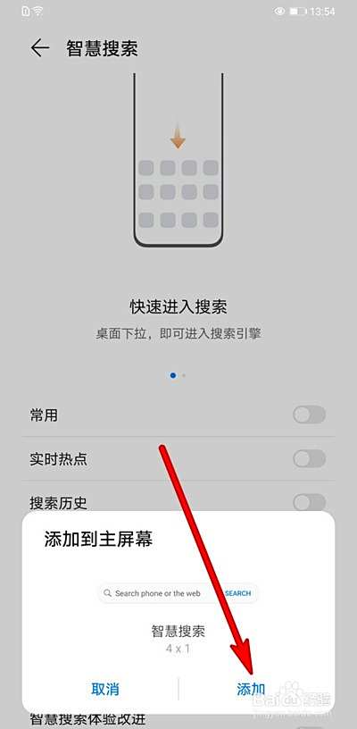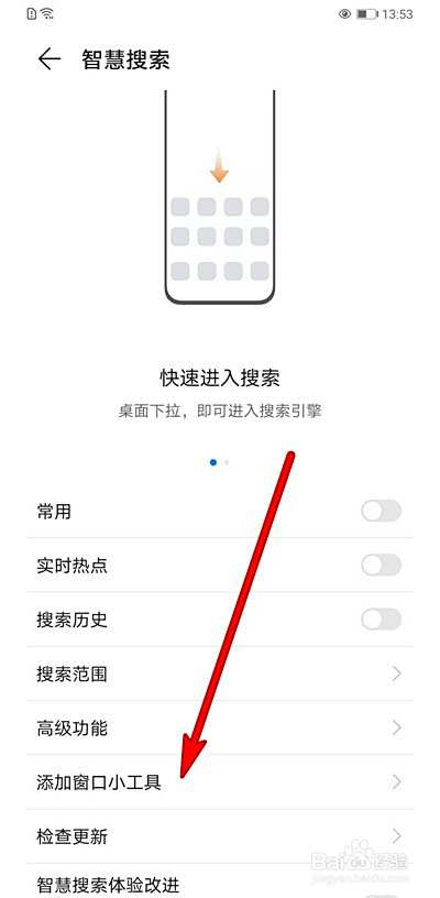 这样就可以在手机桌面显示智慧搜索窗口小工具。