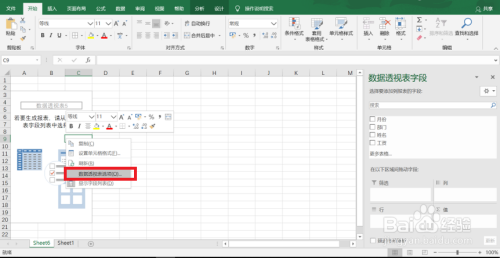 3.在“数据透视表”处点击鼠标右键,选择“数据透视表选项”。