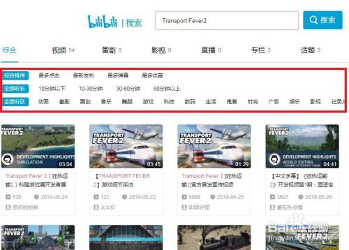 没有出现你需要的视频,那就点击综合排序或时长、分区去缩小搜索范围。
