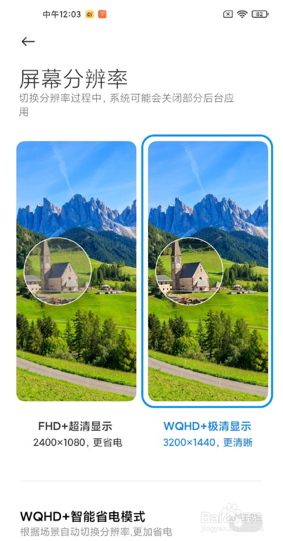 3、勾选超清显示或者极清显示即可。还可以打开智能省电模式开关,根据场景自动切换分辨率。是不是超级简单喜欢的一起看下去吧