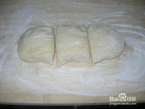 把面团分割成3等分。