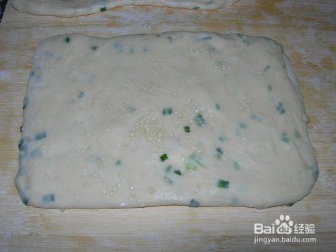 均匀地摸上油,然后撒上一层葱花和白芝麻。