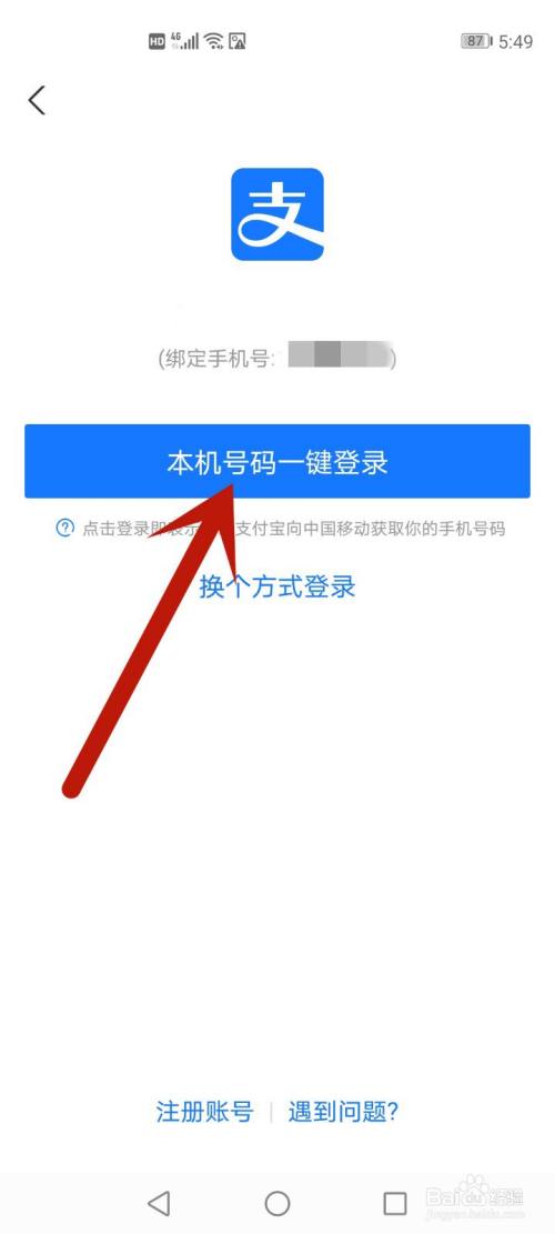 打开支付宝,填入账号密码登录,或者使用本机号码一键登录。