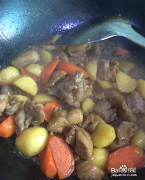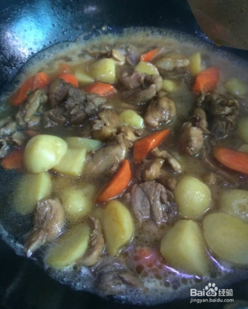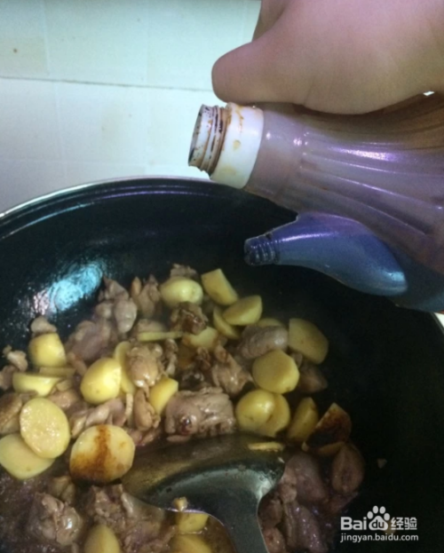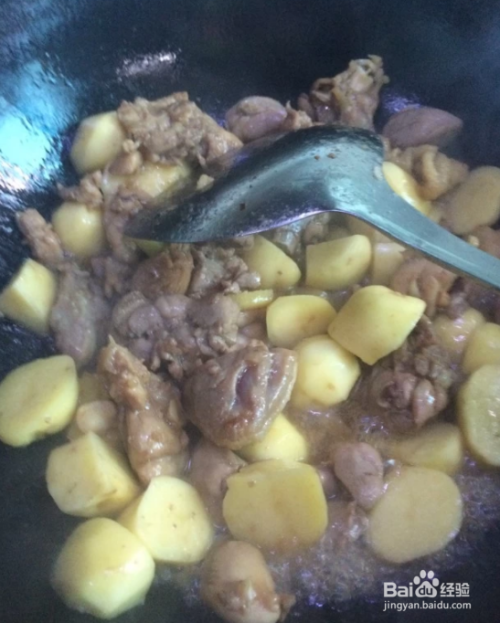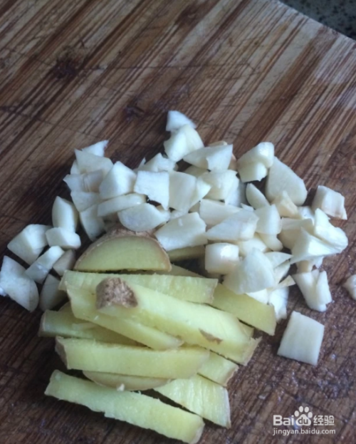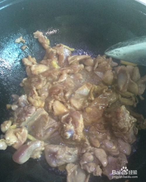 点火倒油,等油锅热后,下姜蒜爆香,下鸡块翻炒至没有血色为止。