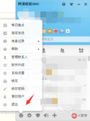 然后在我们点击该旺旺面板下的主菜单后,弹出选项中我们点击“退出”。