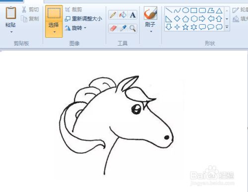 第2步,我们把天马的眼睛画出来,眼中留两块空白,显示的眼睛特别明亮,