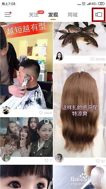 我们需要在快手录制一段视频去设置封面,在快手里点击右上角的【录制】。