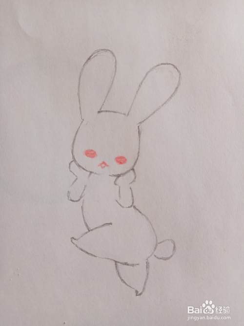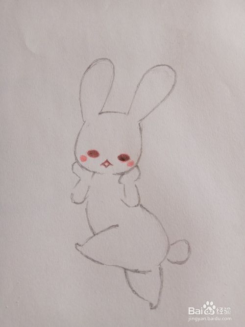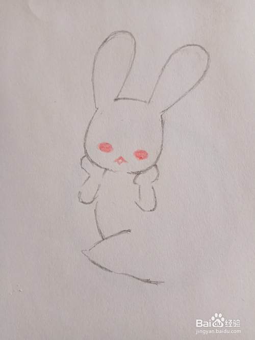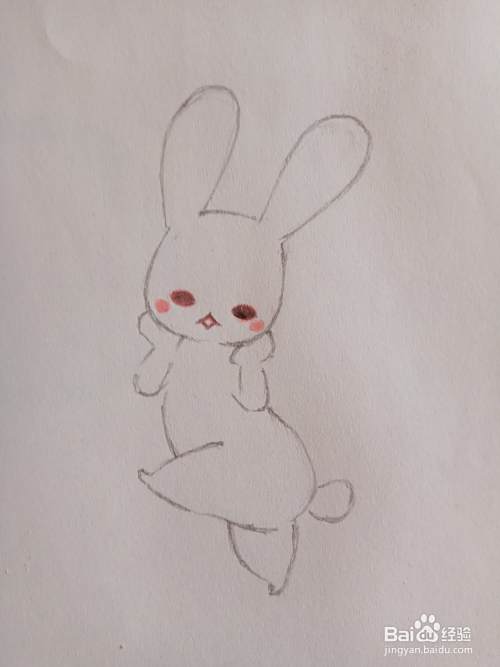最后,用黑色铅笔将小兔子的眼睛和嘴巴涂成黑色的,在小兔子脸颊上画出红红的圆,很可爱吧。