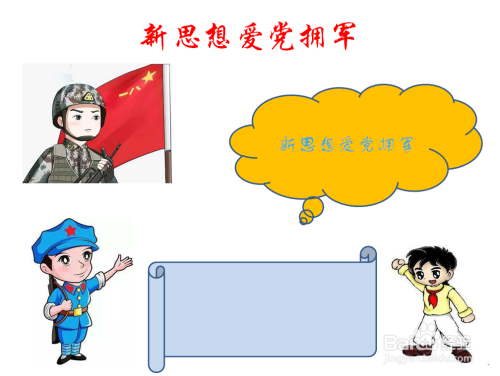 然后在右上方内容框里写上“新思想爱党拥军”,