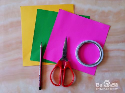 准备你喜欢的彩色纸、剪刀、铅笔、双面胶。